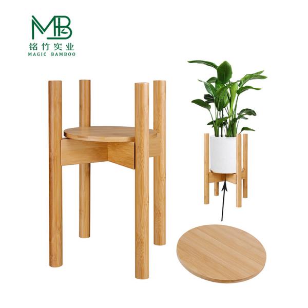 Adjustable Bamboo Flower Pot Stand With Tray For Balcony Images |